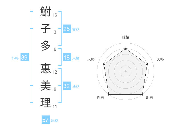 鮒子多 惠美理さんを姓名の画数から五運を鑑定