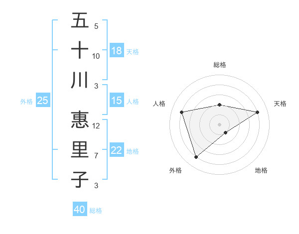 五十川 惠里子さんを姓名の画数から五運を鑑定