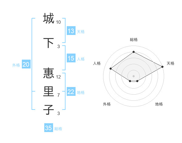 城下 惠里子さんを姓名の画数から五運を鑑定