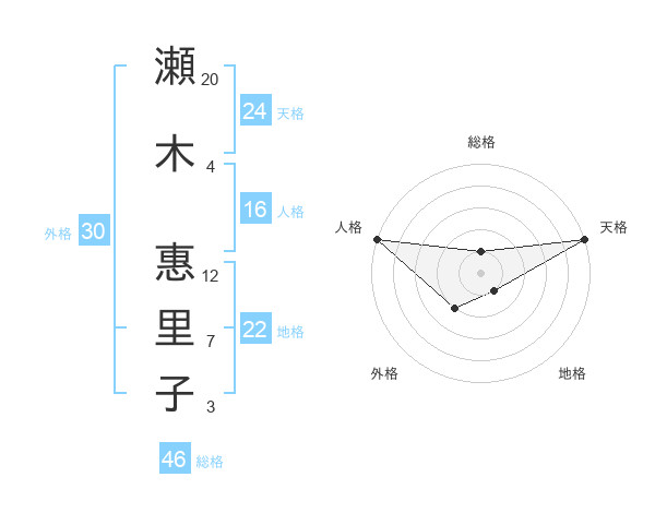 瀬木 惠里子さんを姓名の画数から五運を鑑定