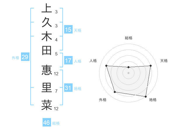 上久木田 惠里菜さんを姓名の画数から五運を鑑定