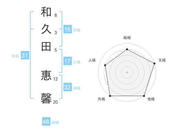 和久田 惠馨さんを姓名の画数から五運を鑑定