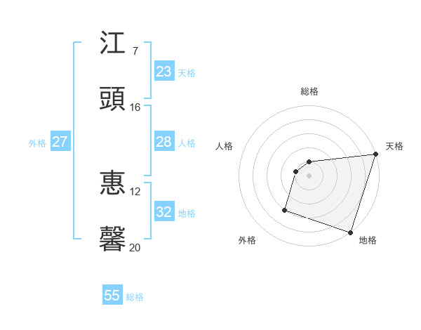 江頭 惠馨さんを姓名の画数から五運を鑑定