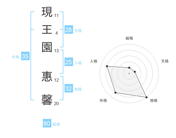 現王園 惠馨さんを姓名の画数から五運を鑑定