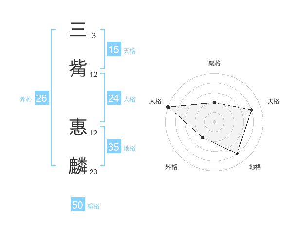 三觜 惠麟さんの総格は50画の2点!