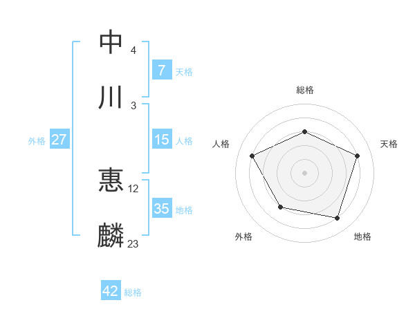 中川 惠麟さんの総格は42画の3点!