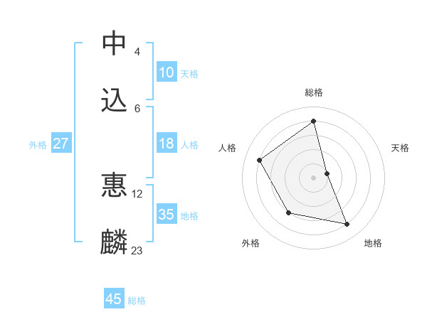 中込 惠麟さんを姓名の画数から五運を鑑定