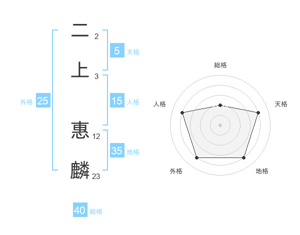 二上 惠麟さんを姓名の画数から五運を鑑定