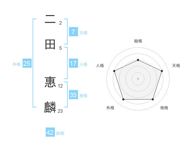 二田 惠麟さんを姓名の画数から五運を鑑定
