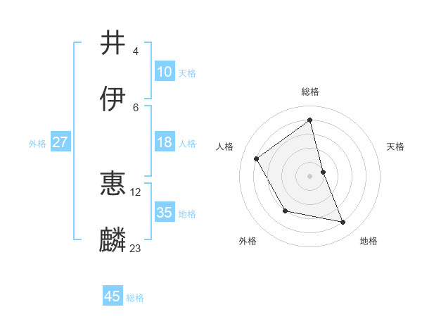 井伊 惠麟さんの総格は45画の4点!