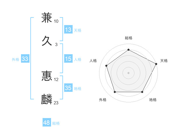 兼久 惠麟さんの総格は48画の4点!