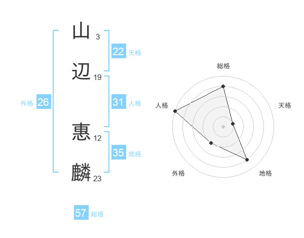 山辺 惠麟さんの総格は57画の4点!