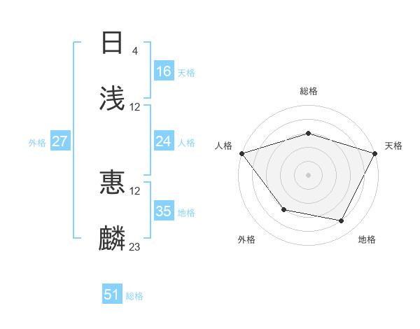日浅 惠麟さんを姓名の画数から五運を鑑定