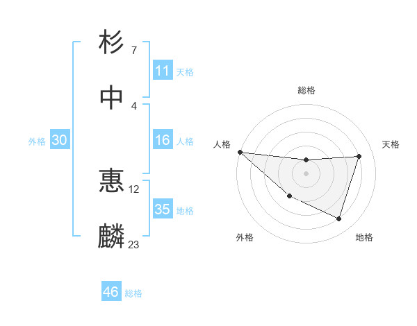 杉中 惠麟さんを姓名の画数から五運を鑑定