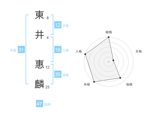 東井 惠麟さんを姓名の画数から五運を鑑定