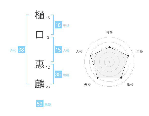 樋口 惠麟さんの総格は53画の3点!