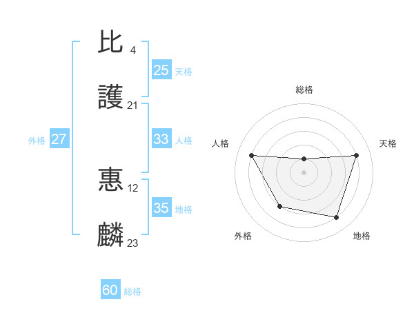 比護 惠麟さんの天格は25画の4点!