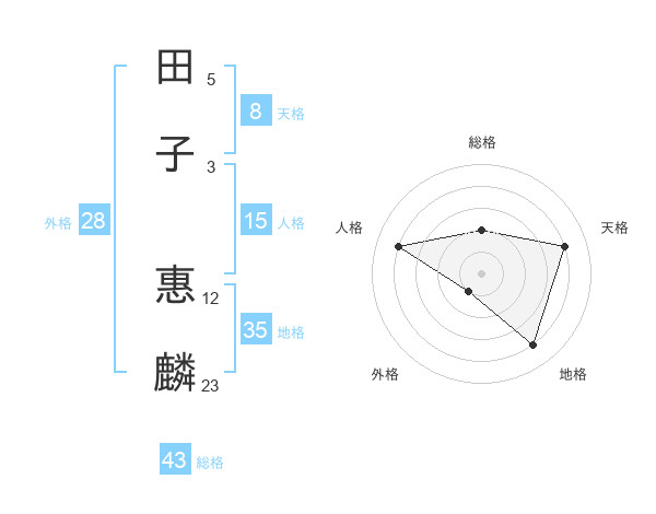 田子 惠麟さんを姓名の画数から五運を鑑定
