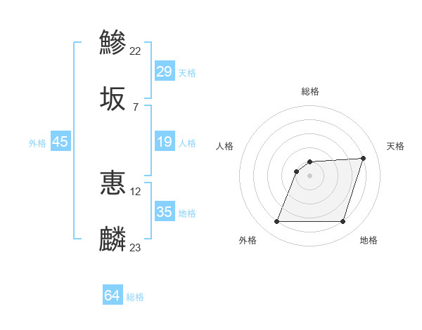 鰺坂 惠麟さんを姓名の画数から五運を鑑定