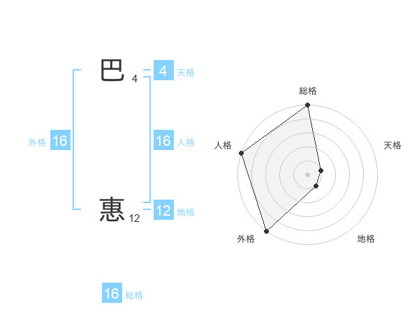 巴 惠さんの外格は16画の5点!