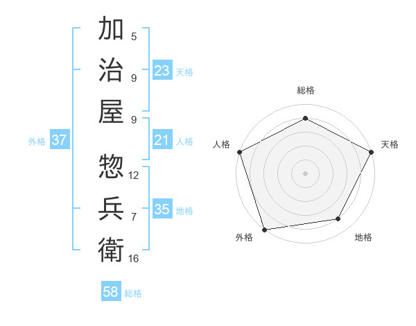 加治屋 惣兵衛さんを姓名の画数から五運を鑑定