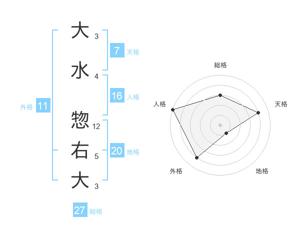 大水 惣右大さんを姓名の画数から五運を鑑定