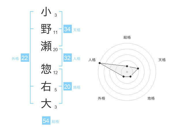 小野瀬 惣右大さんを姓名の画数から五運を鑑定