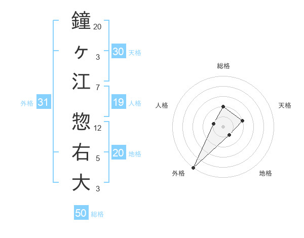 鐘ヶ江 惣右大さんの総格は50画の2点