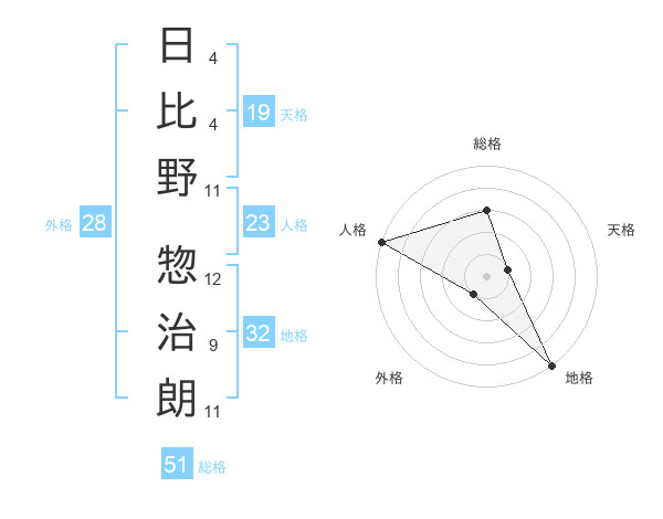 日比野 惣治朗さんを姓名の画数から五運を鑑定