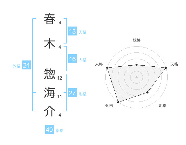 春木 惣海介さんの天格は13画の5点!