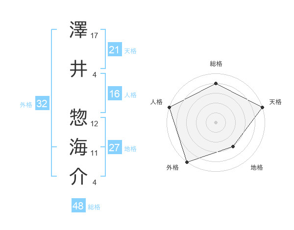 澤井 惣海介さんの総格は48画の4点!