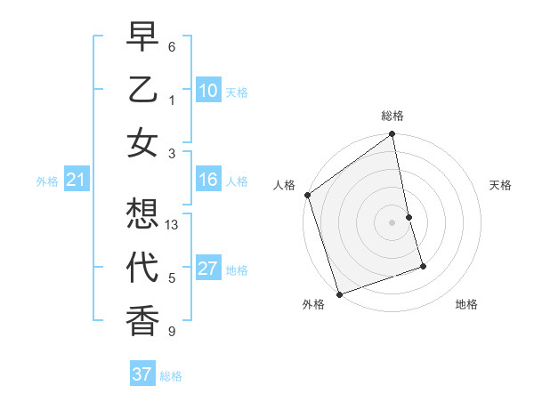 早乙女 想代香さんの総格は37画の5点!