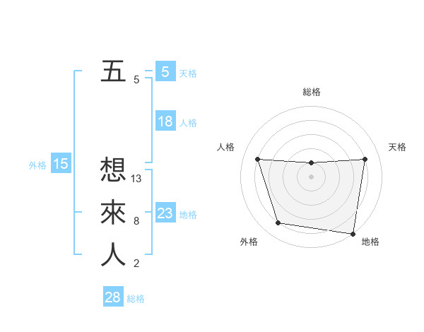 五 想來人さんの総格は28画の1点!
