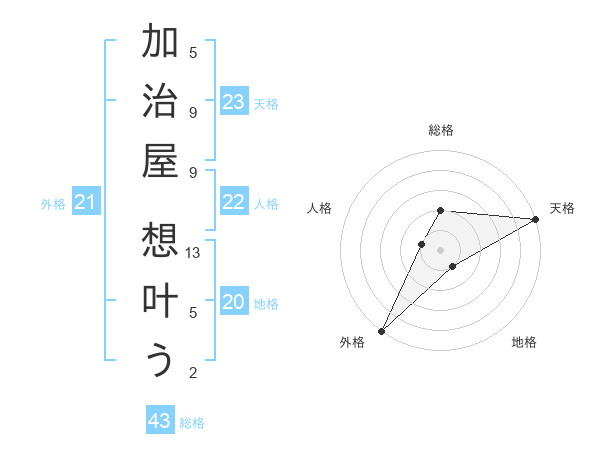 加治屋 想叶うさんを姓名の画数から五運を鑑定