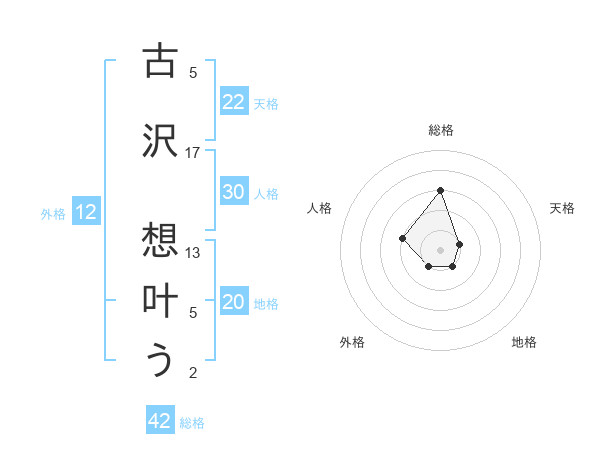 古沢 想叶うさんを姓名の画数から五運を鑑定