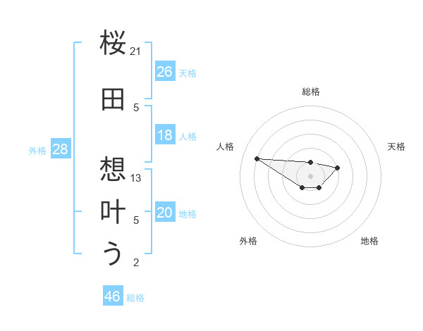 桜田 想叶うさんを姓名の画数から五運を鑑定