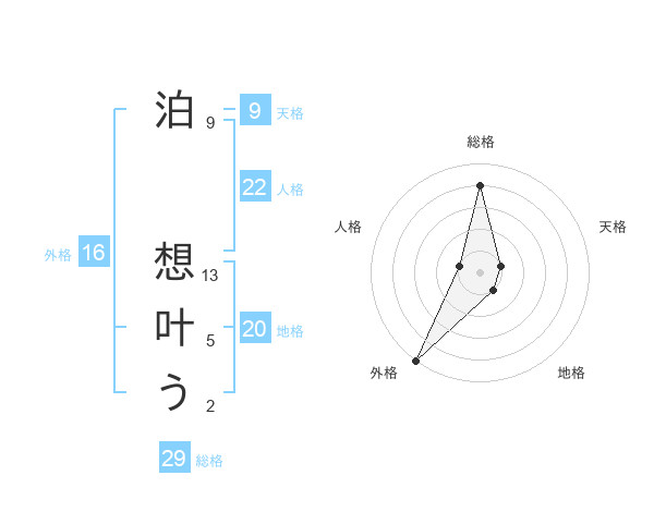 泊 想叶うさんの外格は16画の5点!