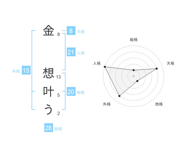 生活面を象徴する運勢です。外部から受ける影響力を表し、結婚運、家庭運や職場、環境への順応性を表します。