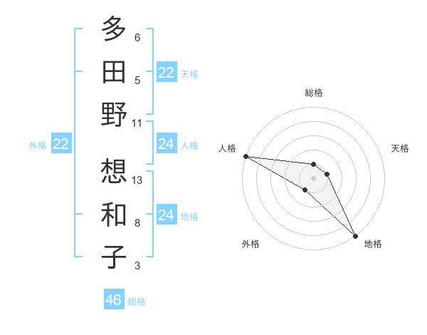 多田野 想和子さんを姓名の画数から五運を鑑定