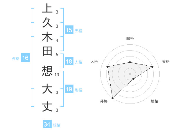 上久木田 想大丈さんを姓名の画数から五運を鑑定