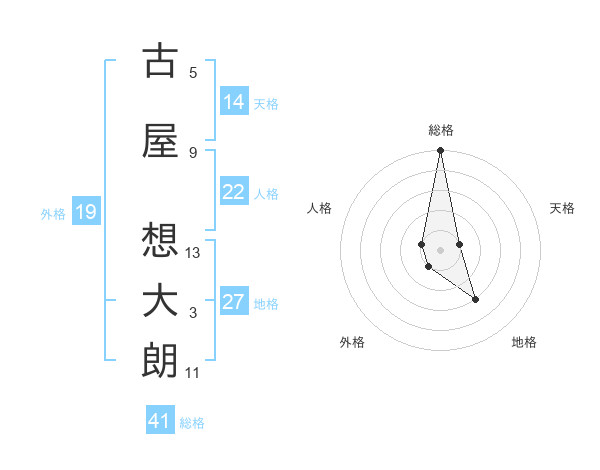 古屋 想大朗さんを姓名の画数から五運を鑑定