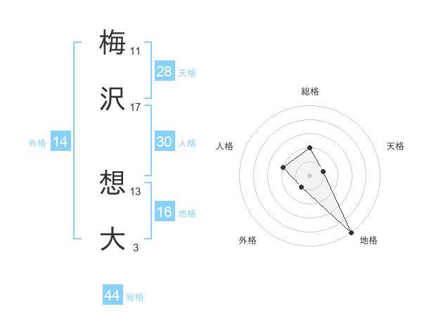 梅沢 想大さんを姓名の画数から五運を鑑定