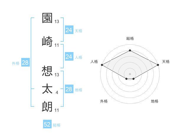 園崎 想太朗さんの総格は52画の4点!