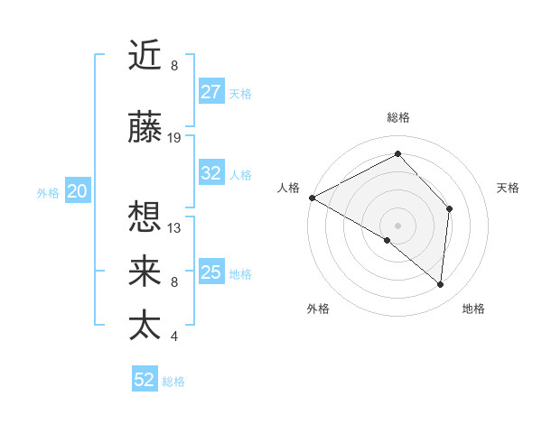 近藤 想来太さんを姓名の画数から五運を鑑定