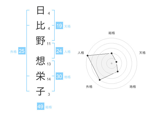 日比野 想栄子さんを姓名の画数から五運を鑑定