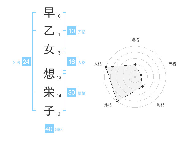 早乙女 想栄子さんを姓名の画数から五運を鑑定