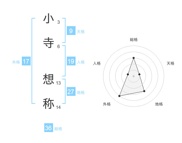 小寺 想称さんの外格は17画の4点!