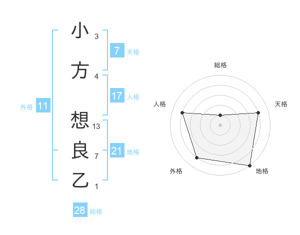 小方 想良乙さんを姓名の画数から五運を鑑定