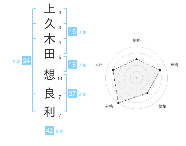 上久木田 想良利さんを姓名の画数から五運を鑑定