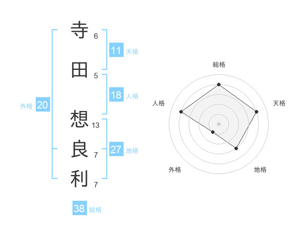 寺田 想良利さんを姓名の画数から五運を鑑定